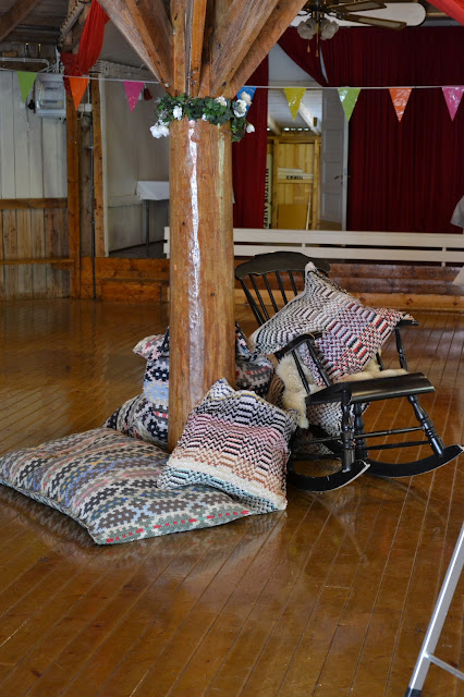 Kotilaiturin räsymattosäkkituolit ja -tyynyt saivat kutsun synttäreille, joita juhlittiin Tortinmäen lavalla. Tyynytuotteet päätyivät illan keskipisteeksi, Maijun, juhlakalun vierelle. Uudet upeakuosiset säkkituolit valmistuivat juuri juhlien alla ja saivat nimekseen Miia ja Riia. Sain upeat matot lahjoituksena ystävältäni ja nimesin säkkituolit hänen ja siskonsa mukaan :) Synttäreitä juhlittiin 50-luvun hengessä ja kivaa riitti aamuun saakka. Onnea vielä kerran, Maiju <3 ja kiitos Tarja.